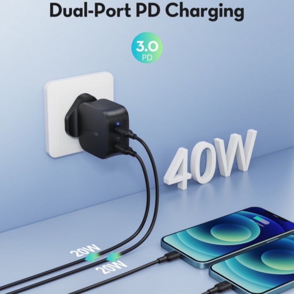 - اسم الموديل : PD Pioneer 40w GaN 2-Port Wall Charger
