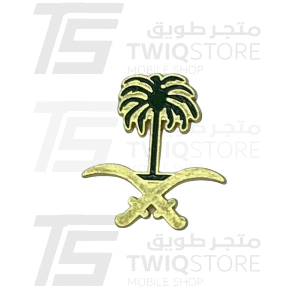 استكر معدني - سيفين ونخلة محدد ذهبي مطفي واخضر ا