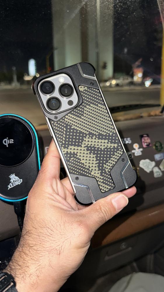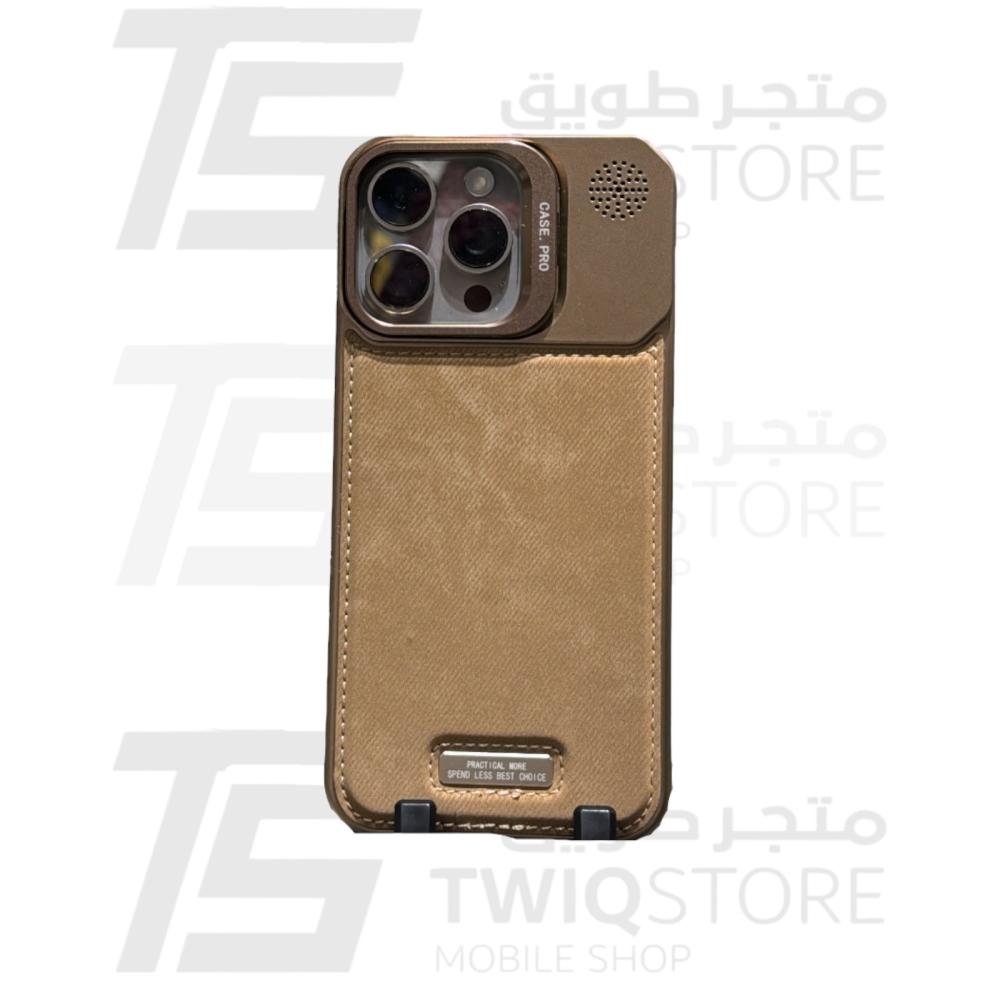ألوت - كفر حماية Alot نوبل جلد ماج سيف مع اطار معدني نحاسي للكاميرا للايفون - اسود