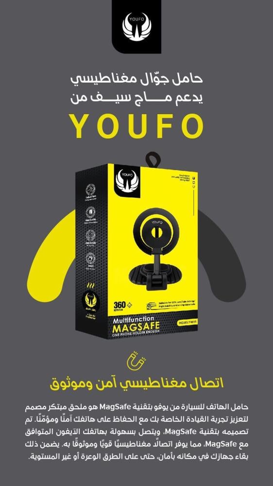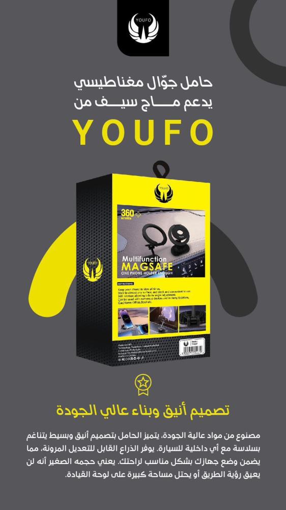 صُنع حامل الهواتف المغناطيسي من YOUFO باستخدام قطع مغناطيسية مدمجة متطورة، مما يوفر إمساك آمنلأجهزتك.