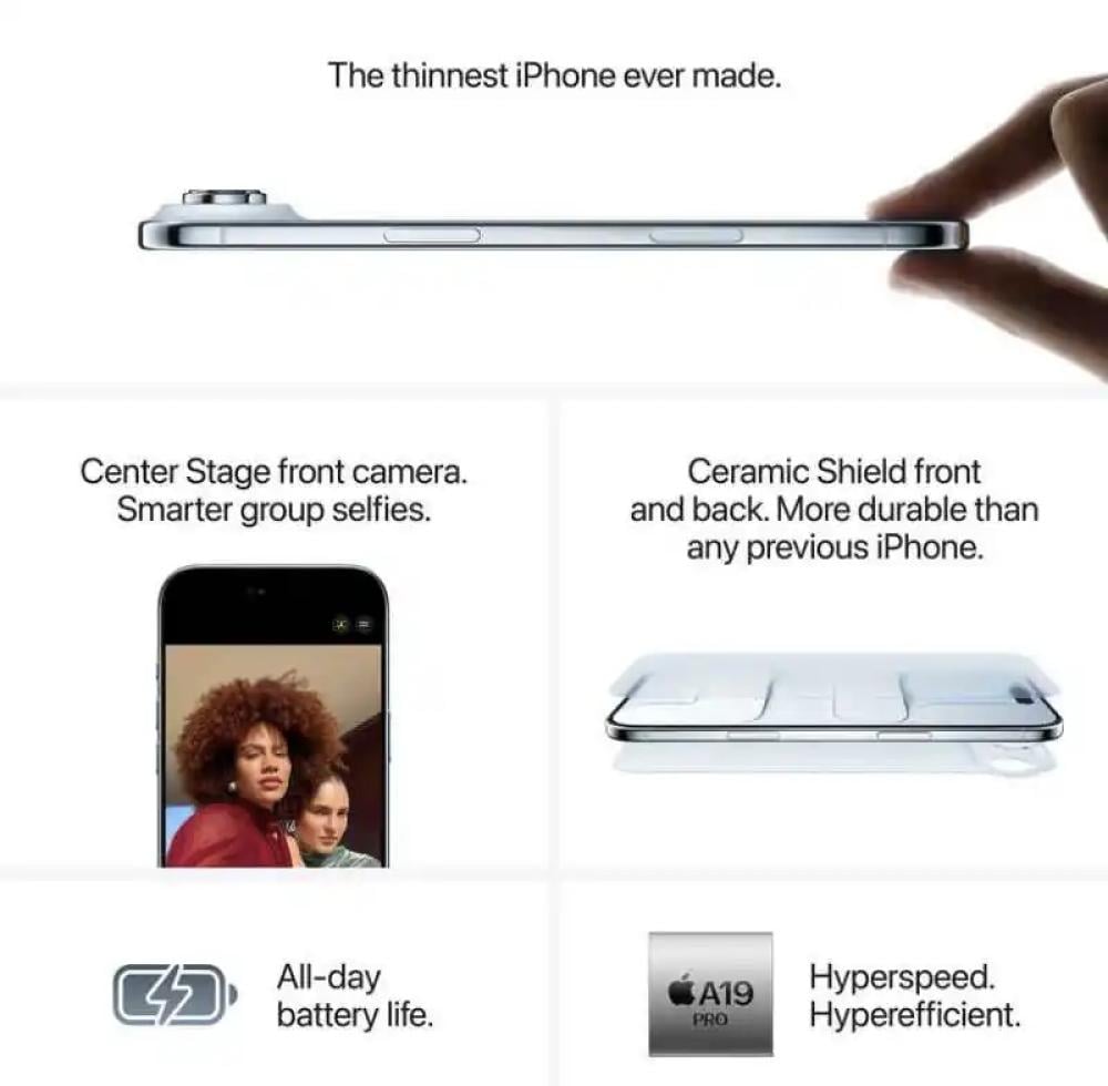 أداء احترافي في أنحف iPhone على الإطلاق. فهو يجمع بين قوة الجيل الأحدث من شرائح Apple silicon وكفاءة شريحة A19 Pro