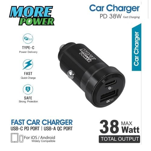 شاحن سيارة مور بور 38 واط 2 منفذين تايب سي + USB