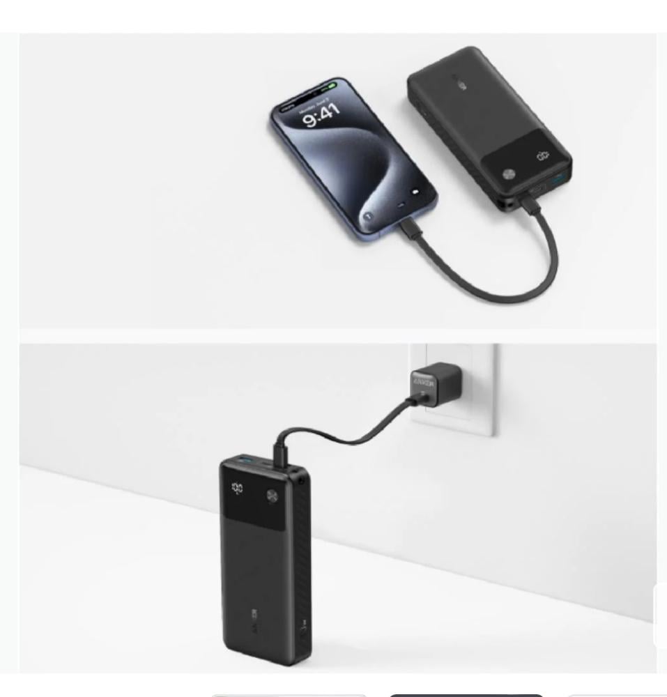 انكر بطارية متنقلة بسعة 20,000 ملي امبير بقوة 30 واط بمنفذين تايب سي ومنفذ يو اس بي مع سلك تايب سي