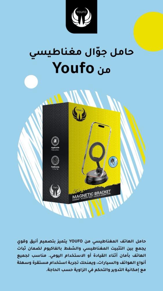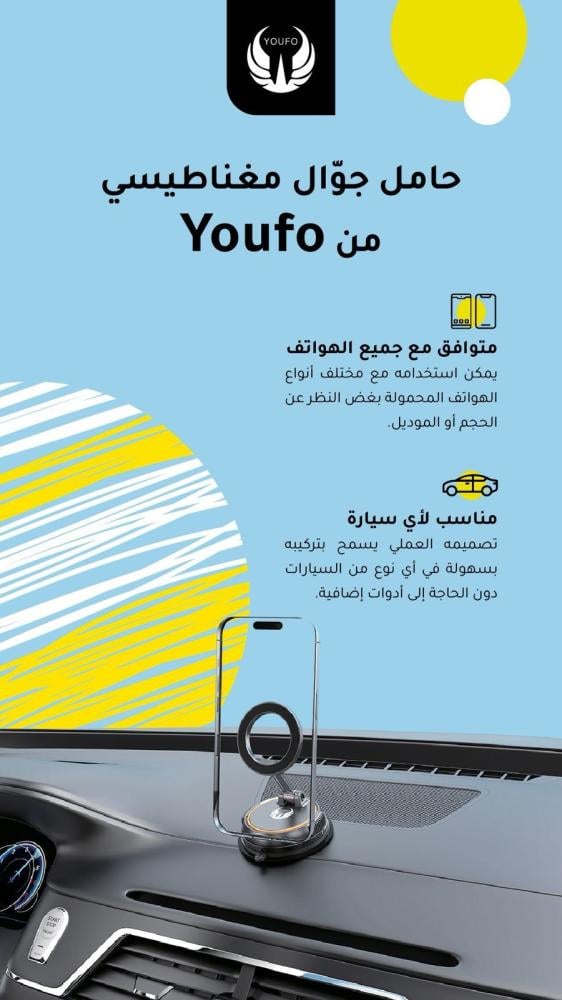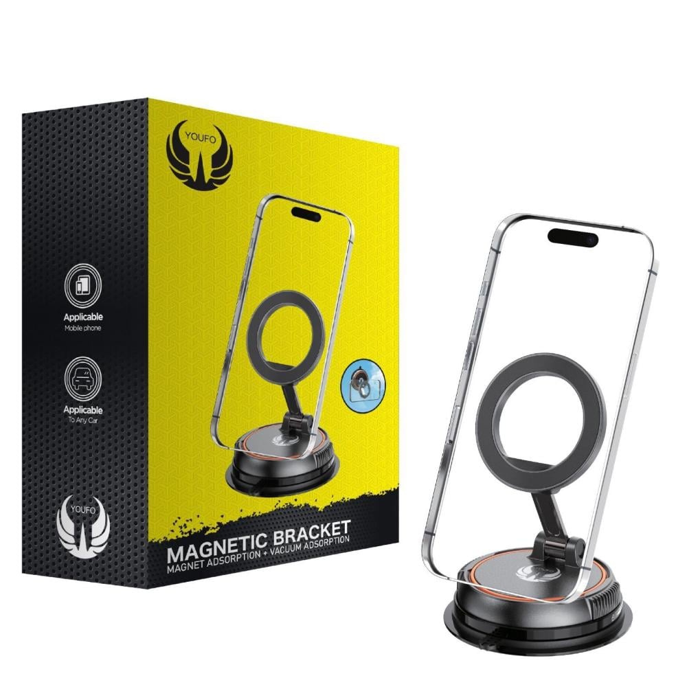 حامل الهاتف المغناطيسي من YOUFO يجمع بين التصميم الأنيق والقوة العملية بفضل تقنية التثبيت المغناطيسي المدمجة مع قاعدة الشفط بالفاكيوم لضمان ثبات الهاتف بأمان تام أثناء القيادة أو الاستخدام اليومي. يتميز بسهولة التركيب والتوافق مع جميع أنواع الهواتف والسيارات، ويوفر تجربة قيادة مريحة مع إمكانية تدوير الهاتف وضبط الزاوية بحرية للحصول على أفضل رؤية ممكنة.