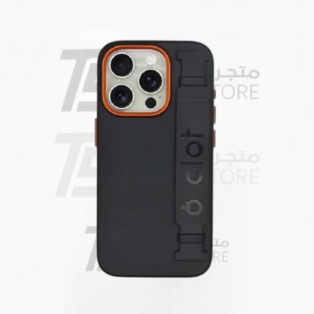 ألوت - كفر حماية Alot نوبل جلد ماج سيف مع اطار معدني نحاسي للكاميرا للايفون - اسود