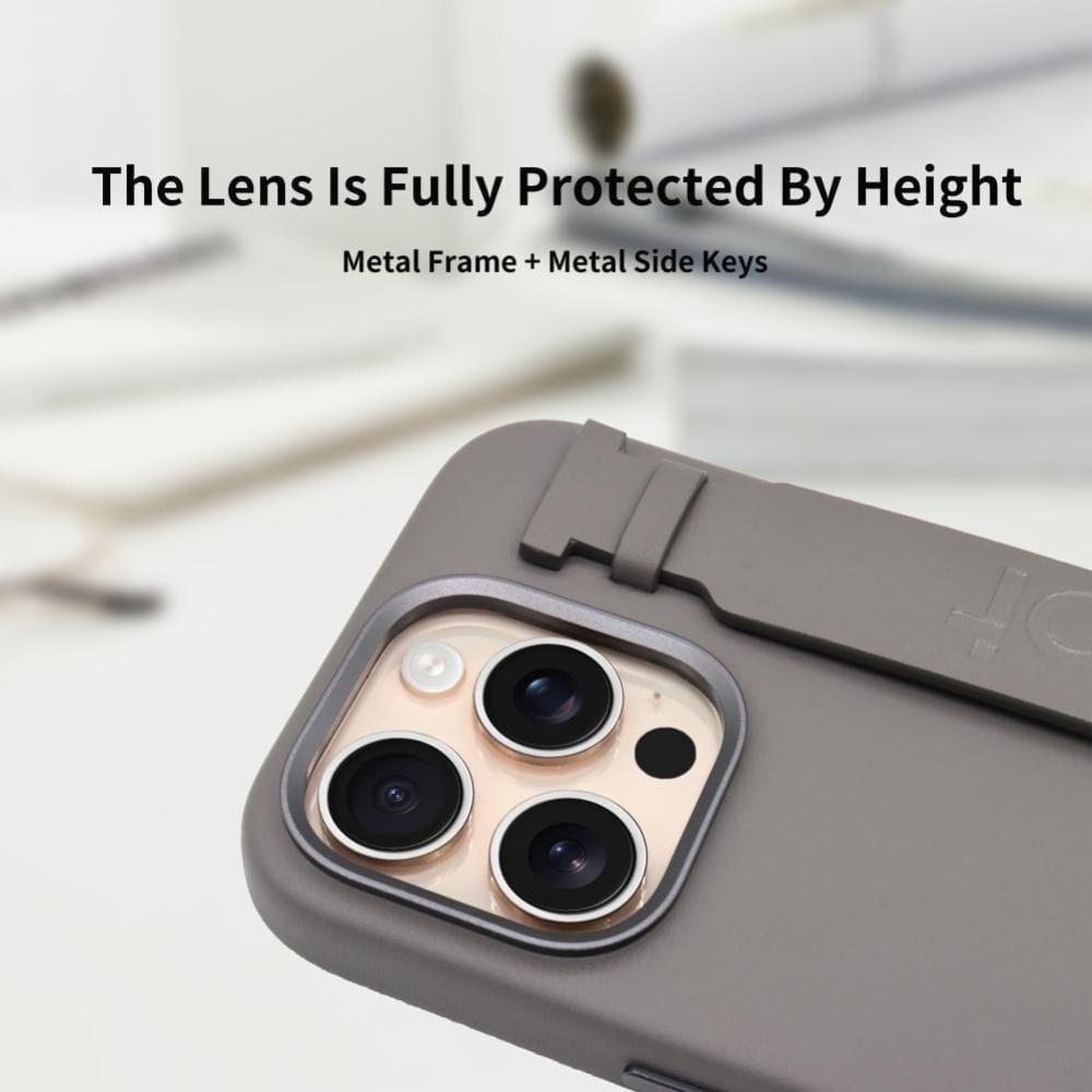 ألوت - كفر حماية Alot نوبل جلد ماج سيف مع اطار معدني للكاميرا للايفون - رمادي