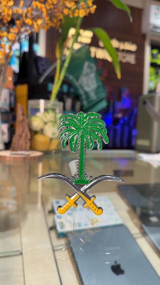استكر معدني مناسب لسيارات - شعار سيفين ونخلة حجم كبير