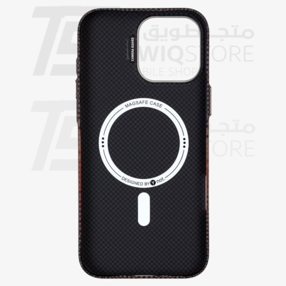 واي نوت - جراب حماية من ألياف الكربون الماج سيف مع ستاند للكاميرا بنى منقط أحمر