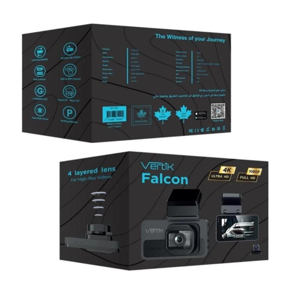 كاميرا للسيارة من نوع Vertik Falcon، وتأتي مع مجموعة من الميزات التقنية التي تتيح لك تصوير الفيديو بجودة عالية وتوفير الأمان خلال القيادة.